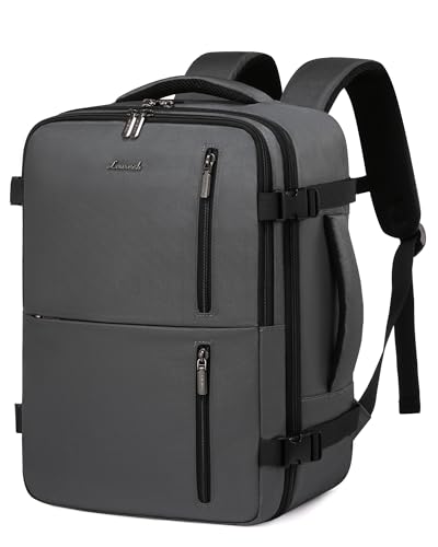 LOVEVOOK Sac à Dos Cabine Grand 40L, Sac à Dos Voyage Avion Antivol, Bagage à Main Homme Femme, Sac Ordinateur Portable 17 Pouces Travail Résistant Aux Éclaboussures Gris