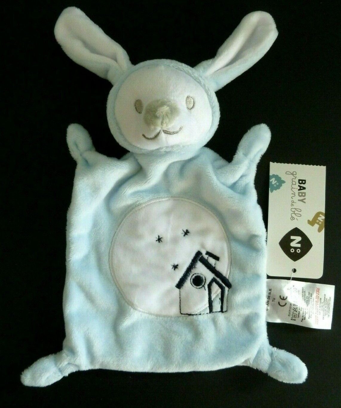 *. Doudou plat GRAIN DE BLE ZANNIER OREILLE DE LAPIN BLEU CIEL BLANC MAISON NEUF