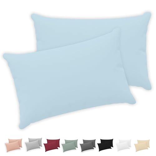 Taie Oreiller 50 x 70 cm Coton (Lot de 2) Dreamzie - 100% Coton Jersey 150 GSM -Bleu - Taie d'oreiller 50x70 cm- Housse de Coussin Résistant et Hypoallergénique pour Oreiller 50x70 cm