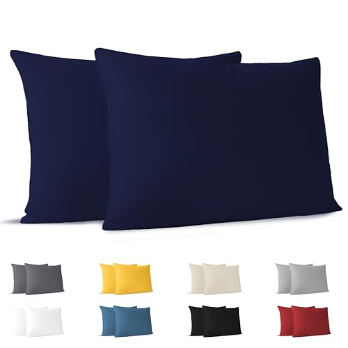 Dreamzie Taie Oreiller 50 x 70 cm Coton (Lot de 2) 100% Coton Jersey 150 GSM -Bleu Foncé - Taie d'oreiller 50x70 cm- Housse de Coussin Résistant et Hypoallergénique pour Oreiller 50x70 cm
