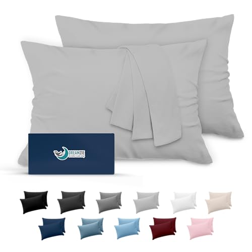 Dreamzie Taie Oreiller 50x70 Lot de 2 en Microfibre Certifiée Oeko-Tex - Housse Coussin Douce Et Brossée, Toucher Peau de Pêche - Gris