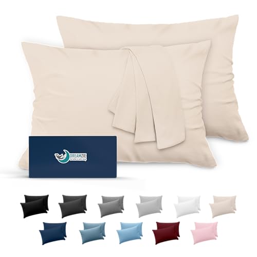 Dreamzie Taie Oreiller 50x70 Lot de 2 en Microfibre Certifiée Oeko-Tex - Housse Coussin Douce Et Brossée, Toucher Peau de Pêche - Beige
