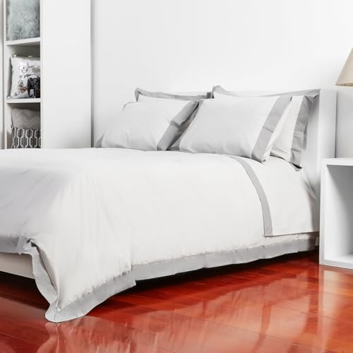 Dreamzie - Housse de Couette 135x200 cm avec 1 Taie Oreiller 50x70 cm - Gris Clair/Blanc - Parure de Lit 135x200 en 100% Microfibre - 2 Pièces - Certifié sans Produits Chimiques (Oeko TEX)