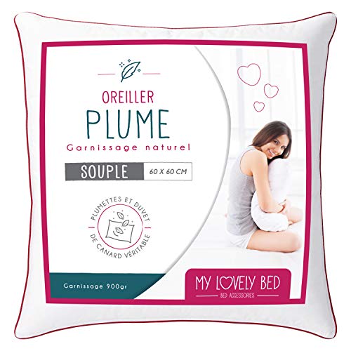 My Lovely Bed - Oreiller 60x60 cm Naturel - Garnissage Plume et Duvet - Enveloppe 100% Coton - Gonflant et Moelleux - Haute Qualité - Ultra Confort