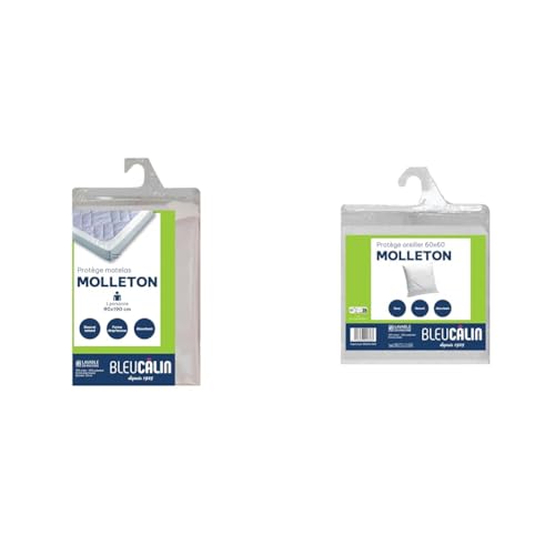 Bleu Calin Lot Alèse Protège-Matelas pour Lit 90x190 cm, Forme Drap Housse + Protège-Oreiller 60x60 cm - Molleton 70% Coton/30% Polyester