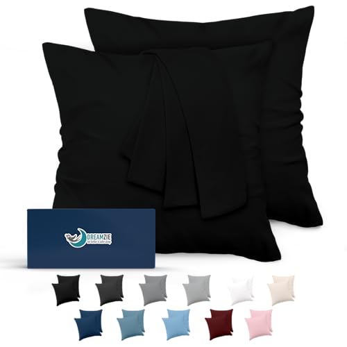 Dreamzie Taie Oreiller 60x60 Lot de 2 en Microfibre Certifiée Oeko-Tex - Housse Coussin Douce Et Brossée, Toucher Peau de Pêche - Noir