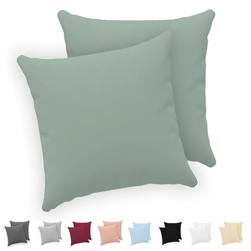 Taie Oreiller 60x60 Coton Renforcé (Set de 2) - Vert - Tissage serré de 57 Fils/cm² - Taie Oreiller 60 x 60 cm- Certifié Oeko Tex
