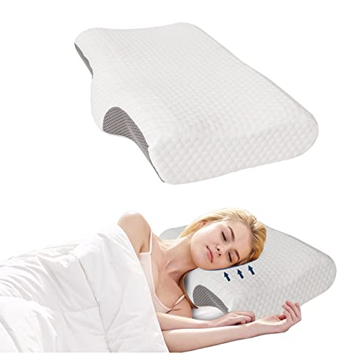 COSYLAND Oreiller Cervical en Mousse à mémoire de Forme - Coussin orthopédique Ergonomique en Forme de Papillon avec Trou d'oreille et Repose-Bras - pour Dormir sur Le côté - Housse Lavable - Gris