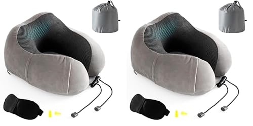 Good Nite Coussin de Voyage,Oreiller Cervical,Mousse à mémoire Oreiller de Voyage avec Masque pour Les Yeux Bouchons d'oreille, Sac de Transport Inclus,Convient pour Avion et Train Gris (Lot de 2)