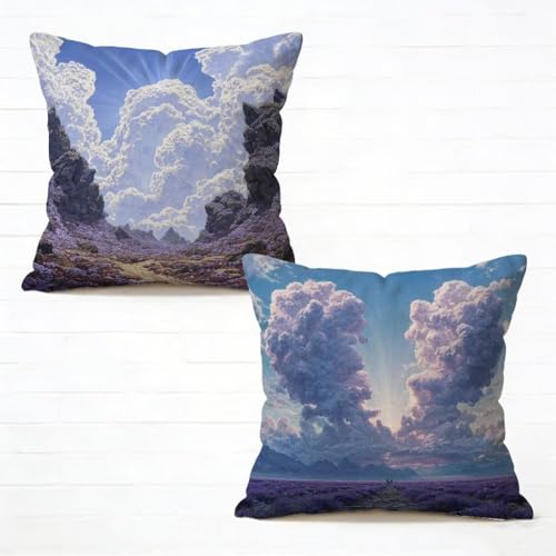 Taie Oreiller 45x45 cm Lot de 2 Violet Housse de Coussin 45 x 45 Gros Coussin De Canapé Lin Taie Oreiller Exterieur Nuage pour Printemps Été Chaise Canape Chambre Terrasse Décoratifs, Gifts 0-807S14