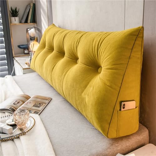 DMJLI-T Coussin de Lecture pour Tête de Lit Grand Coussin de Soutien en Forme de Cale pour Tête de Lit Oreiller Triangulaire Coussin Coin avec Housse Amovible et Lavable,120 × 50 × 20 cm-Giallo