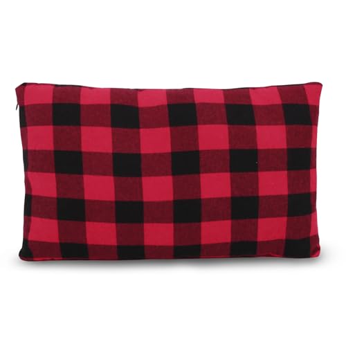 REDCAMP Petit Oreiller de Camping léger et Compressible, 1 Oreiller de Voyage en Flanelle avec Housse d'oreiller Amovible (Carreaux Rouges et Noirs)
