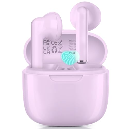 Drsaec Ecouteurs Bluetooth sans Fil, Écouteurs Bluetooth 5.3 avec HiFi Stéréo Basses Casque, 50H Récréation, 4 ENC Réduction de Bruit Mic, Oreillette Bluetooth Sport IP7 Étanche, Violet foncé