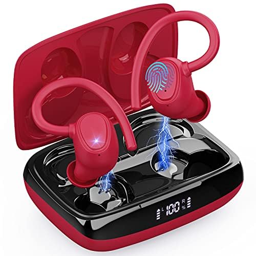Ecouteurs Bluetooth sans Fil Sport, 75H Ecouteurs Bluetooth 5.3 avec HiFi Son Stéréo, 2023 Ecouteurs sans Fil avec ENC Antibruit Mic, Écran LED, IP7 Etanche Oreillette Bluetooth pour Sport, Rouge