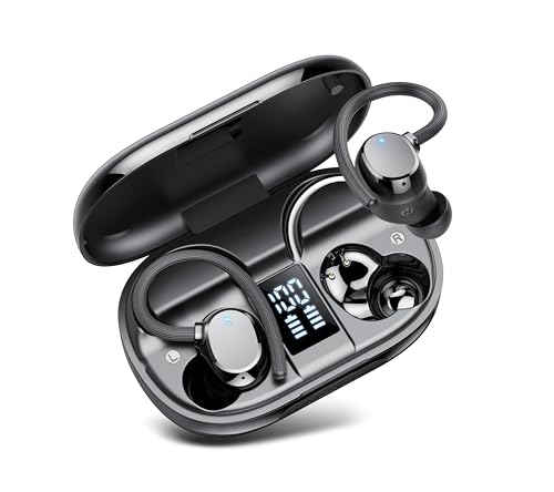 Ecouteurs Bluetooth sans Fil Sport, 2026 Écouteur Bluetooth 5.4 avec 4 ENC Mic, 60+Hrs Ecouteurs sans Fil HiFi Stéréo, IP7 Étanche Oreillette Bluetooth Running, USB-C Charge Rapide, Écran LED Casque