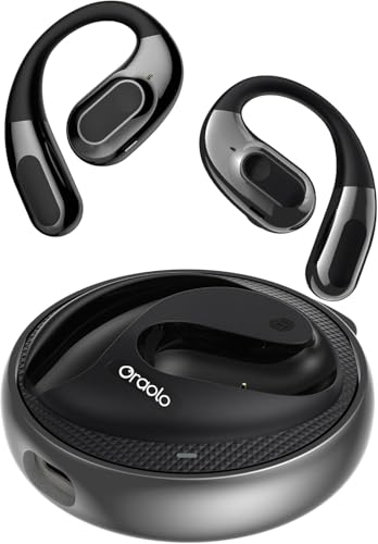 oraolo Ecouteurs Bluetooth sans Fil Open-Ear avec Contrôle Tactile, 32H de Lecture Mini Oreillette sans Fil, Ecouteurs Bluetooth Sport 5.4 avec Casque pour iOS Android, Conception Portative