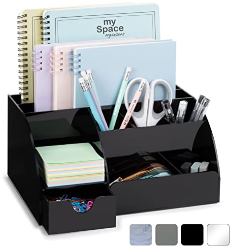 Organiseur de bureau en acrylique avec tiroir, noir, 9 compartiments, fournitures de bureau tout-en-un et accessoires de bureau, améliorez votre décoration de bureau avec cet organisateur de bureau
