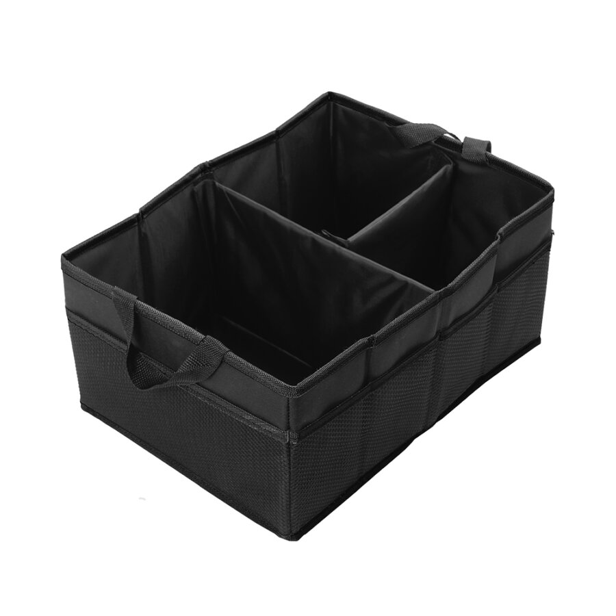 PARENCE.- Organisateur de Coffre Pliable/Sac de Rangement Pour voiture avec 3 Compartiments et des Poignées - Bac de Rangement transportable avec Grande Capacité - Polyester - Couleur Noir