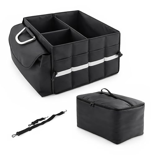 Avilia Organisateur de coffre de voiture 4 compartiments – Poche de rangement pour coffre en nylon – Sac de rangement pour coffre de voiture étanche – Noir – 98 x 30 cm