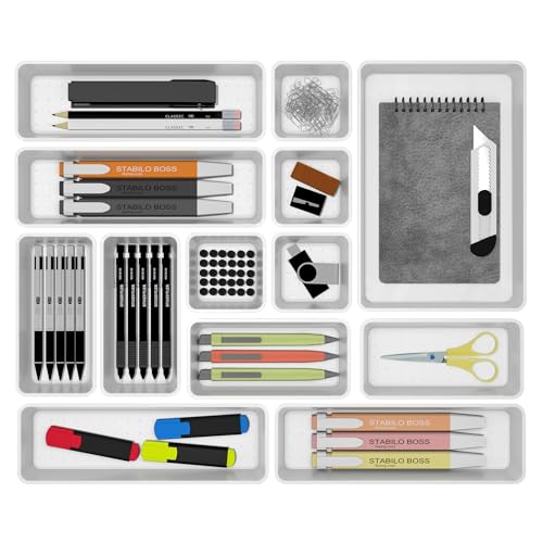 Cetomo 14 Pièces Organisateurs de Tiroir, organisateur de tiroirs avec 4 tailles, boîte de rangement en plastique, séparateurs de tiroir pour la maison, bureau et cosmétiques, Blanc