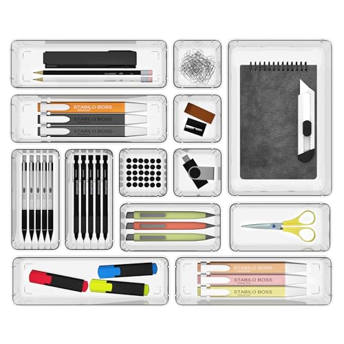 NEAT AND NICE - Organisateur de tiroirs transparent 12 pièces avec patins antidérapants en 4 tailles différentes | Système de rangement de tiroirs pour bureau, salle de bain, cuisine, organisateur de