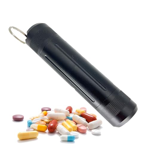 Organisateur,Porte-clés Médicament Pilulier en Acier Inoxydable Portable Médicament Bouteille Étanche Petite Capsule Conteneur de Stockage, Distributeur, Rappel avec Porte-clés, Bouteille de méde