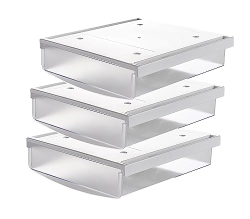 TUKA-i-AKUT 3X 3,5L Tiroirs Sous Bureau, 24x21x8cm Autocollant Boîte à Tiroirs Cachée Organisateur de Rangement pour Bureau/Meuble/Bibliothèque/Armoire de Cuisine, 3 Unités Givré Translucide TKD8606