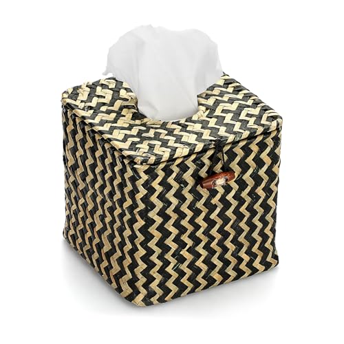 SUMTree Boîte à Mouchoir en rotin Distributeur carré boîte de Papier Organisateur de Bureau pour Salle de Bain, Salon, Chambre, Jardin (Noir)