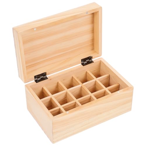 DIYEAH Coffret En Bois Pour Huiles Essentielles Avec 15 Compartiments - Boîte De Rangement Multi-Grilles Stable Pour Bouteilles De 10 Ml Organisateur Pratique Pour Bureau Et Atelier