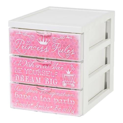 Iris Ohyama, Tour de Rangement Plastique, 3 Petits Tiroirs, Design Princesse, Rangement Enfant, Format A5, Organisateur de Bureau, Pour Accessoires, Salle de bain, Cosmétiques, Sans BPA, Tour, SCF-A5