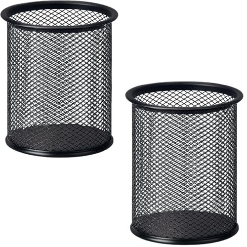 Globly Lot de 2 porte-stylo noir en maille métallique de bureau | porte-stylo rond organisateur pour bureau, maison et école