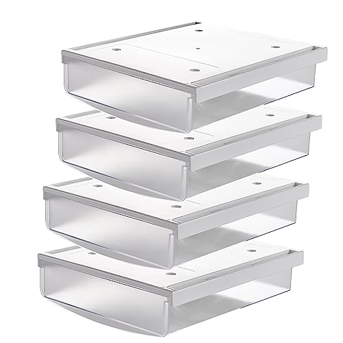 TUKA-i-AKUT 4X 3,5L Tiroirs Sous Bureau, 24x21x8cm Autocollant Boîte à Tiroirs Cachée Organisateur de Rangement pour Bureau/Meuble/Bibliothèque/Armoire de Cuisine, 4 Unités Givré Translucide TKD8606