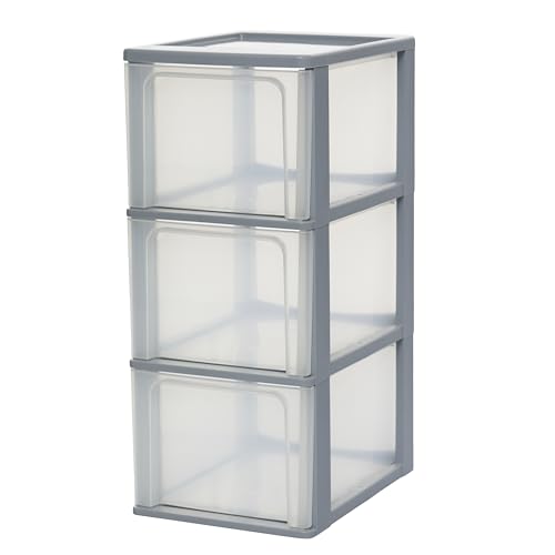 Iris Ohyama, Tour de Rangement Plastique, 3 Grands Tiroirs, Gris, Ouverture Facile, Format A4, A5 & A6, Meuble, Organisateur, pour Bureau, Fourniture Scolaire, Papeterie, Sans BPA, OCH-2300