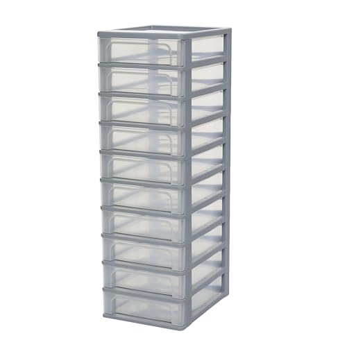 Iris Ohyama, Tour de Rangement Plastique, 10 Petits Tiroirs, Gris, Ouverture Facile, Format A4, A5 & A6, Meuble, Organisateur, pour Bureau, Fourniture Scolaire, Papeterie, Sans BPA, OCH-2100