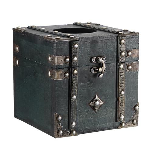 SUMTree Boîte à mouchoir en bois distributeur carré rétro porte-papier décoratif organisateur de Bureau pour la maison (vert foncé)
