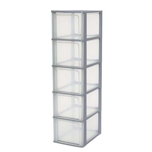Iris Ohyama, Tour de Rangement Plastique, 5 Grands Tiroirs, Gris, Ouverture Facile, Format A4, A5 & A6, Meuble, Organisateur, pour Bureau, Fourniture Scolaire, Papeterie, Sans BPA, OCH-2500
