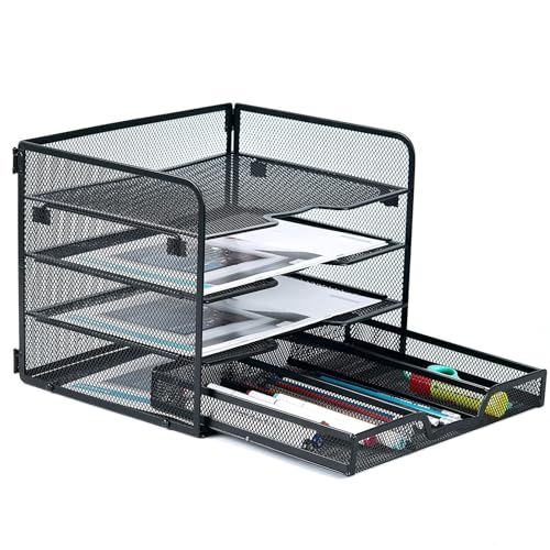 SETTFRFE Plateau de Papeterie à 4 Niveaux en Maille métallique, Organisateur de Bureau pour Le Bureau et la Maison, pour Transporter de Petits Articles Qui Peuvent être utilisés séparément, Noir.
