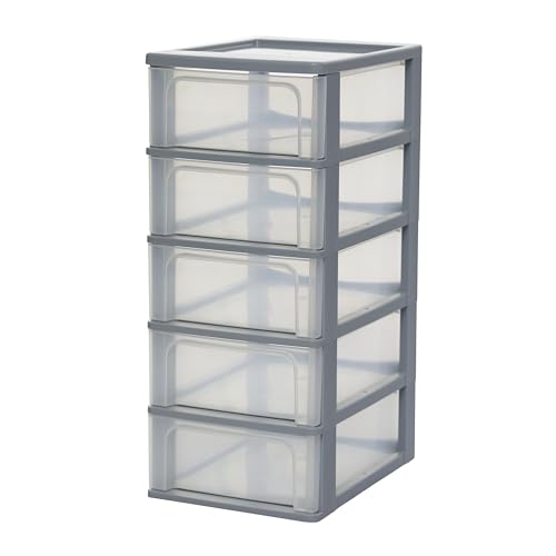 Iris Ohyama, Tour de Rangement Plastique, 5 Tiroirs Moyens, Gris, Ouverture Facile, Format A4, A5 & A6, Meuble, Organisateur, pour Bureau, Fourniture Scolaire, Papeterie, Sans BPA, OCH-2005