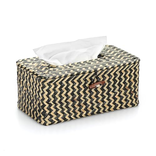 SUMTree Boîte à Mouchoir en rotin Distributeur rectangulaire boîte de Papier Organisateur de Bureau pour Salle de Bain,Salon,Chambre,Jardin (Noir tissé)