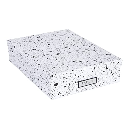 Bigso Box of Sweden organisateur de bureau pour documents A4, brochures, etc. – rangement bureau avec couvercle et poignée – boite de rangement en panneau de fibres et papier – noir moucheté