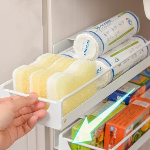 Shunfaji Rangement sous Évier, Organisateur sous Evier Tiroir Coulissant à Extraction avec Poignée, sans perçage, Rangement et Organisation de Cuisine (43 x 25 x 7cm)