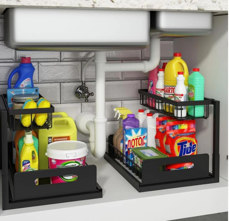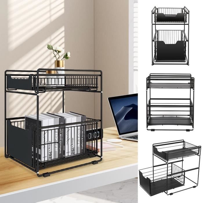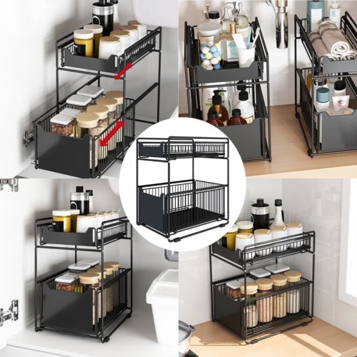 Lot de 2 Meuble Sous Evier-Organisateur sous Evier Tiroir Coulissant à Extraction - Rangement Et Organisation De CuisineNoir