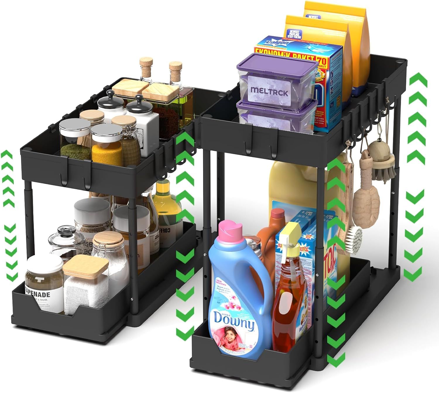 Meltrck - Lot de 2 Rangement sous Évier - Organisateur sous Evier Tiroir Coulissant à Extraction - Rangement Et Organisation De Cuisine