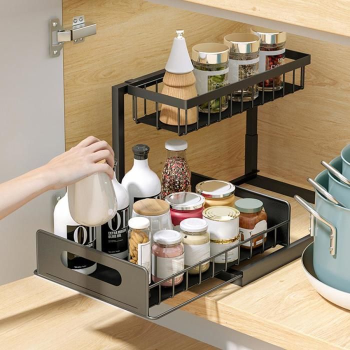 Meuble Sous Evier-Organisateur sous Evier Tiroir Coulissant à Extraction Rangement et Organisation De Cuisine 2 Niveaux Panie