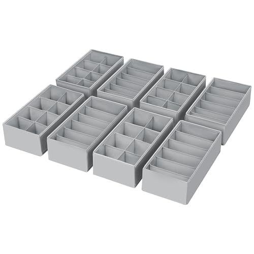 DIMJ Organisateur de Tiroirs De Rangement - Séparateurs de Tiroir Non Tissés, Boîte Organisateur Dressing Rangement Gain de Place Pour Chaussettes, Sous-VêTements, Cravates, 8 Pièces Gris