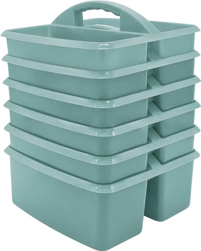 Teacher Created Resources Lot de 6 boîtes de rangement portables en plastique vert eucalyptus pour salles de classe, chambre d'enfant et organisation de bureau, 3 compartiments