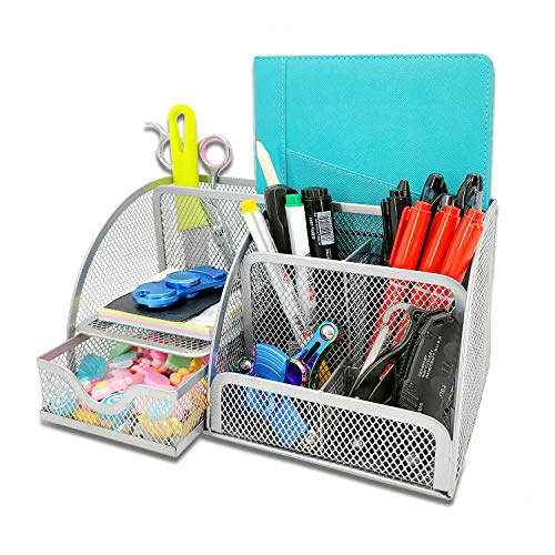 MDHAND Organisateur de bureau et accessoire, organisation de bureau en filet, organisateurs de bureau et rangement avec tiroir (Argent)