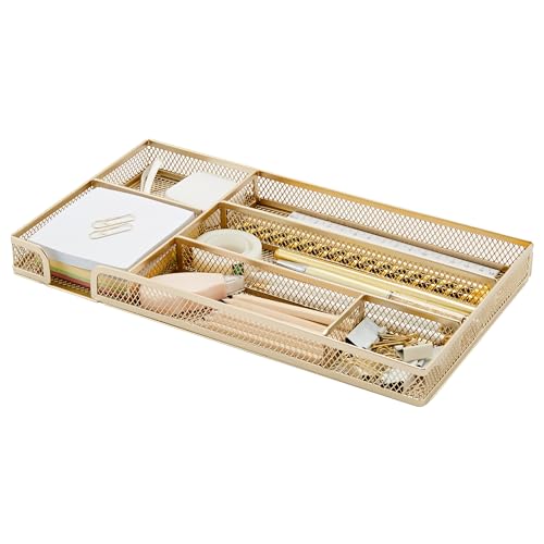 Annova Plateau de rangement de tiroir de bureau pour organisation de bureau – Maille métallique – Accessoires et fournitures de (Gold)