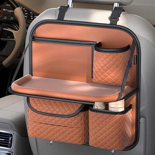 LHMM Organiseurs de Voiture pour Suzuki Livio 2015-2024, Organiseur de Siège Arrière Cuir Étanche Organisateur Voiture avec Plateau,Orange