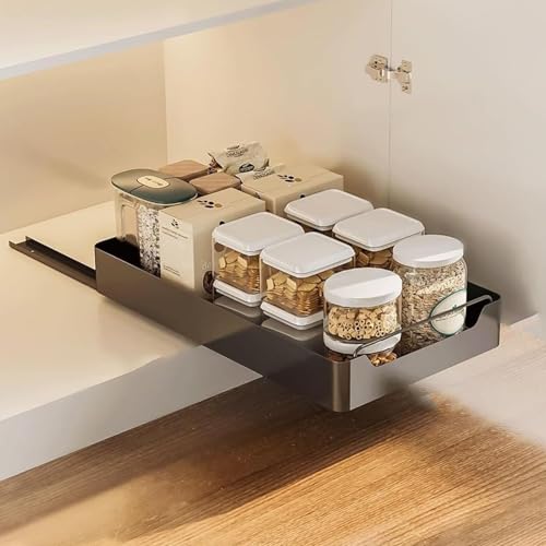 Organiseur de tiroir de cuisine coulissant – Solution de rangement coulissante sans perçage, design en acier au carbone pour un accès facile et un gain de place dans les armoires de cuisine